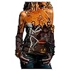Briskorry Dames blouse met blote schouders sexy V-hals shirt tuniek bovenstuk vlammen print T-shirt ritssluiting tops elegant basic jumper shirt sweatshirt
