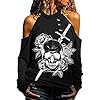 Briskorry Dames blouse met blote schouders sexy V-hals shirt tuniek bovenstuk vlammen print T-shirt ritssluiting tops elegant basic jumper shirt sweatshirt
