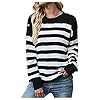 Briskorry Dames gestreepte pullover casual stretch tuniek top herfst lente lange mouwen ronde hals contrasterende kleur blouse lange mouwen T-shirt tiener meisjes vrijetijdsshirt
