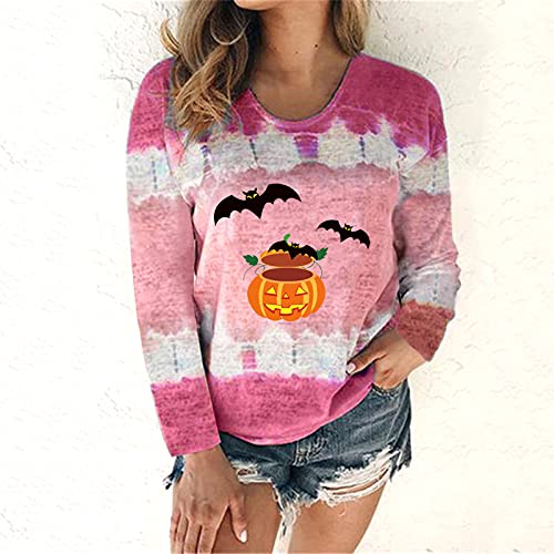 BIKETAFUWY Halloween shirt met lange mouwen dames print lange mouwen sweatshirt casual blouse pullover vrouwen Halloween sweatshirts lange mouwen pompkin print sweater lichtgewicht pullover blouse tops