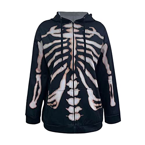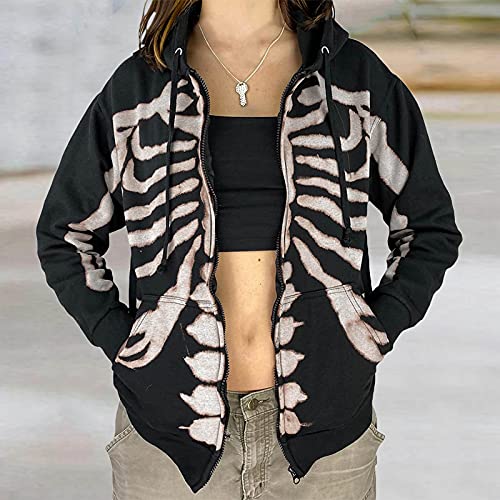 Briskorry Academia Clothes Y2k Zip Up capuchontrui met capuchon, skelet, oversized sweatshirt, modieus, casual, ruimvallend, 90s pullover, hoodie, streetwear, bovenkleding