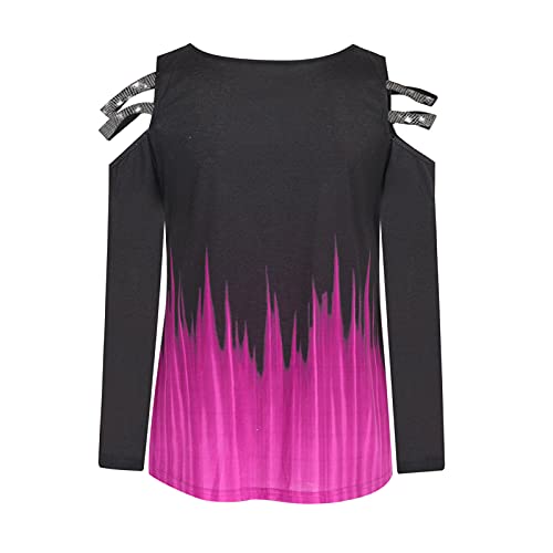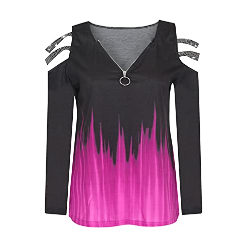 Briskorry Dames blouse met blote schouders sexy V-hals shirt tuniek bovenstuk vlammen print T-shirt ritssluiting tops elegant basic jumper shirt sweatshirt