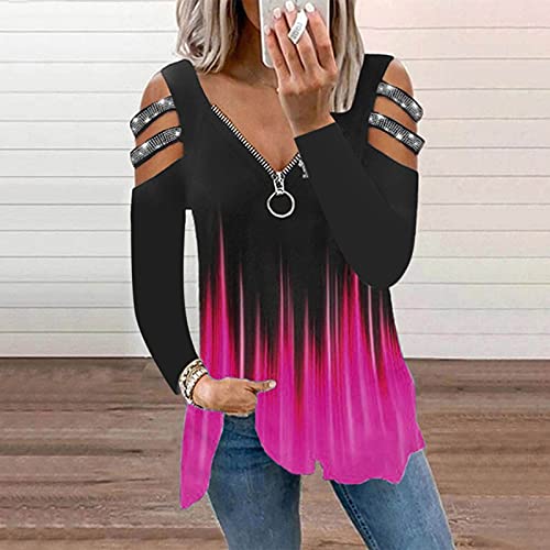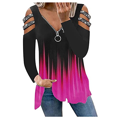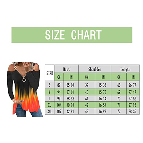 Specification: Briskorry Dames blouse met blote schouders sexy V-hals shirt tuniek bovenstuk vlammen print T-shirt ritssluiting tops elegant basic jumper shirt sweatshirt