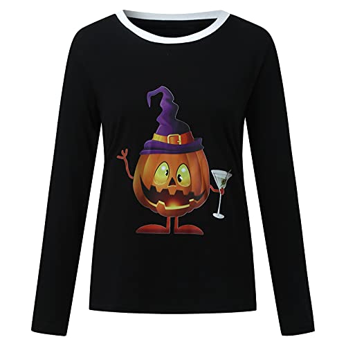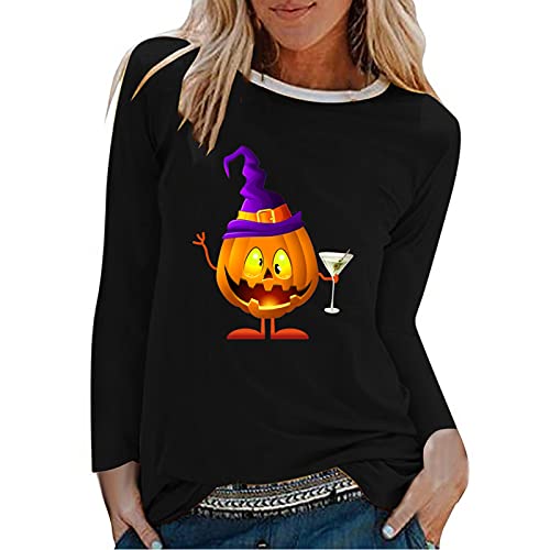 Specification: Briskorry Dames Halloween pompoen print blouseshirt vervalste tweedelige ronde hals sweatshirt effen schattig casual losse lange mouwen oversized casual bovenstuk