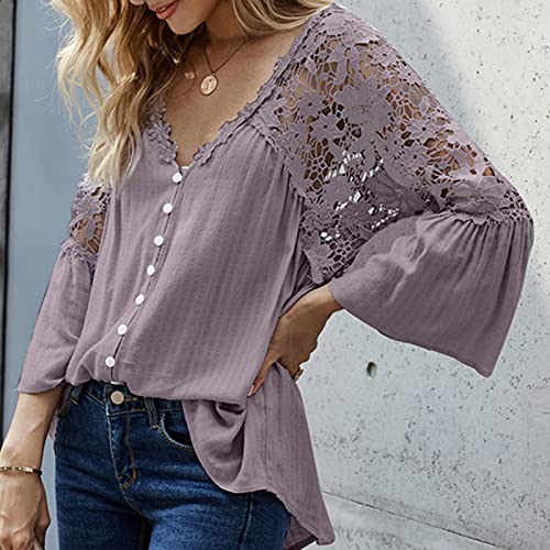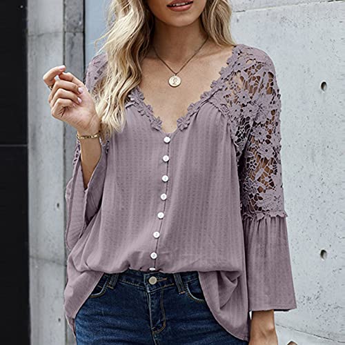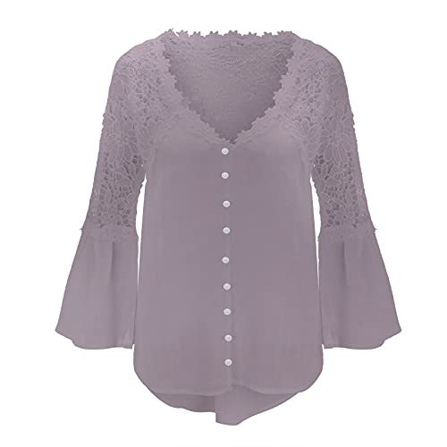 Specification: Briskorry Dames kant chiffon blouse V-hals elegant uithollen button down shirts tuniek lange mouwen pullover casual effen jumper shirt hemdblouse lange mouwen