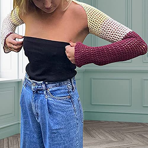 Specification: Briskorry Dames sexy colour block-trui gebreide crop top buxvrij top buikvrij gebreide kleding overmouwen trui uithollen gebreid vest streetwear bovenstuk herfst kleding