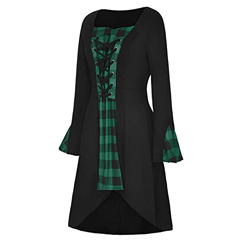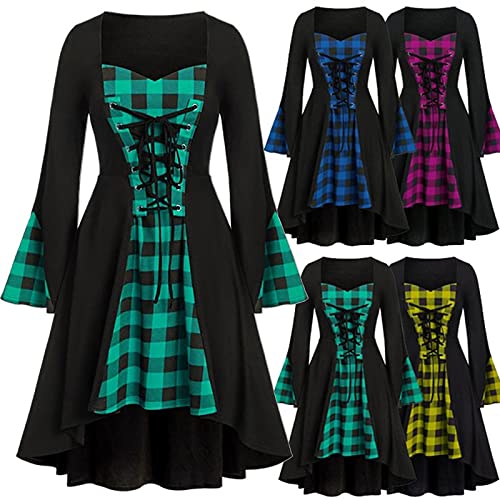 Specification: Briskorry Damesjurk met lange mouwen, vintage, retro, middeleeuwse jurk, geruit, lange jurk voor Halloween, Kerstmis, party, cosplay, kostuum, gothic, punk, middeleeuwse cocktailjurk