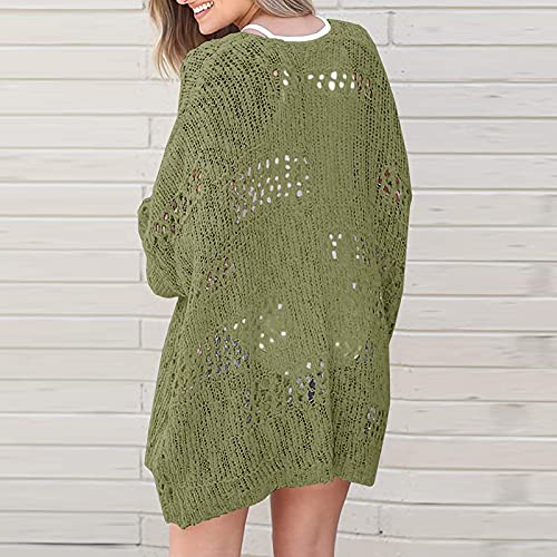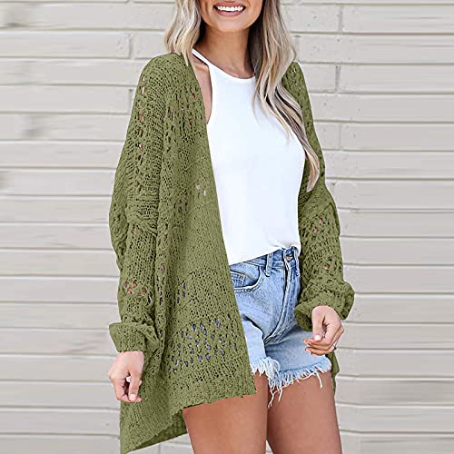 Briskorry Gebreid vest voor dames, met vleermuismouwen, effen, elegant, vintage, gebreide trui aan de voorkant, open lange mouwen, gebreide jas, Hollow Out sweater jack, cover-up ontspannen cardigan
