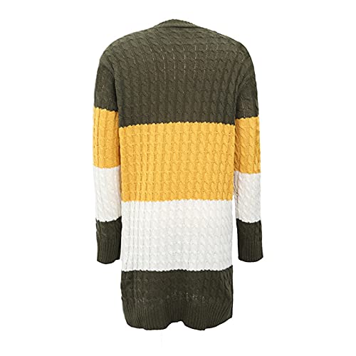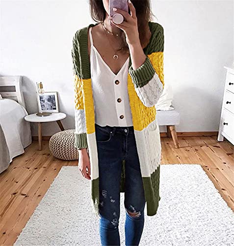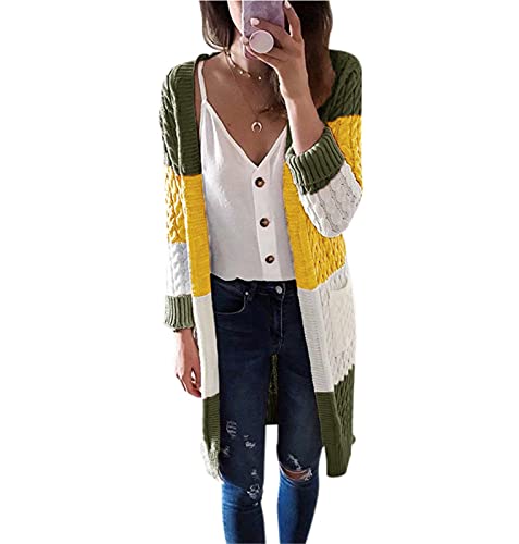Specification: Briskorry Gebreide cardigan voor dames, contrasterende kleur, elegant, casual, met zijzakken, open voorkant, dunne gebreide jas voor herfst en winter, lang en licht