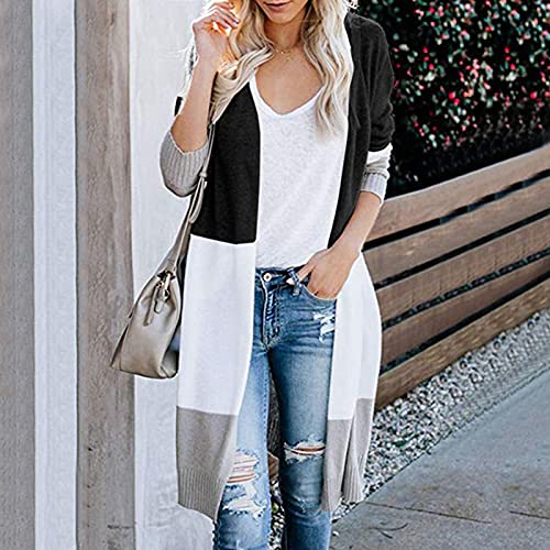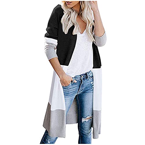 Specification: Briskorry Gebreide cardigan voor dames, gestreept, met kleurblok, lang, grof gebreid, comfortabel, voor herfst en winter, met lange mouwen, warme mantel, losse pasvorm, gebreide cardigan, pulloverjas