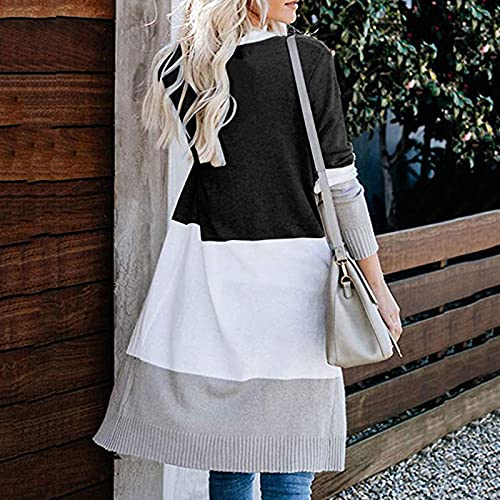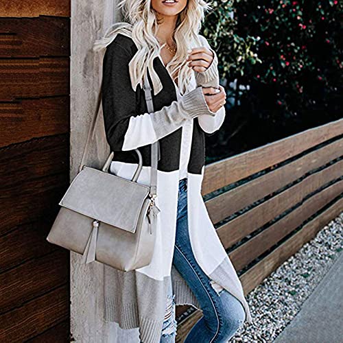 Briskorry Gebreide cardigan voor dames, gestreept, met kleurblok, lang, grof gebreid, comfortabel, voor herfst en winter, met lange mouwen, warme mantel, losse pasvorm, gebreide cardigan, pulloverjas