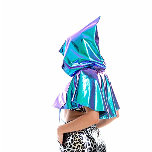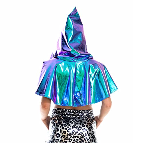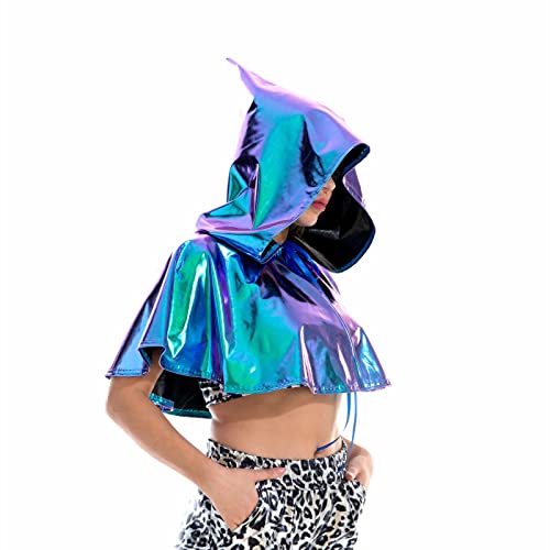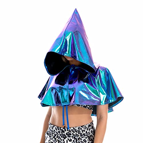 Specification: Briskorry Halloween dames reflecterende cape korte mouwen met capuchon voor cosplay Halloween buikvrij kostuum creatief nieuw feestkleding festival carnavalsbenodigdheden feestspeelgoed