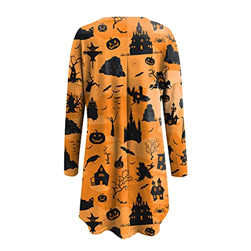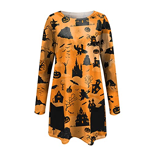 Briskorry Halloween ronde hals lange mouwen shirts pompoen bedrukt lange spliet pullover casual losse tops sweatshirt met zak festivalkostuums streetwear vrijetijdstop