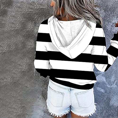 Briskorry Hoodie voor dames, oversized, met capuchon, gestreepte capuchontrui, sweatshirt met trekkoord, casual pullover, baggy lange mouwen, jumper bovenstuk, trui, sweatjack