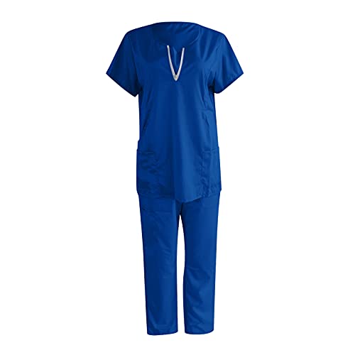 ✿ Kasack dames T-shirts bont verzorging grote maten met motief Kerstmis T-shirt slipzak met zakken korte mouwen V-hals sliphemd beroepskleding verpleegkundige uniformen verpleegkundige