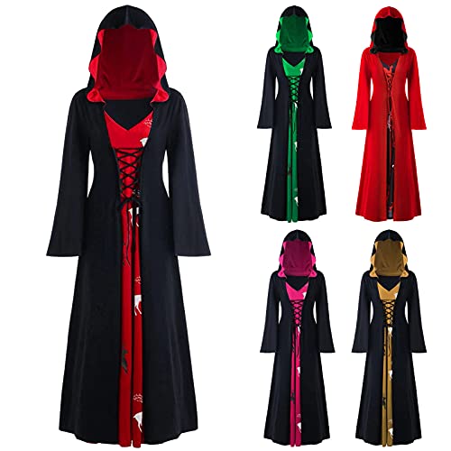 Briskorry Middeleeuwse jurk voor dames, lange mouwen, vintage, retro, Kerstmis, maxi-jurk met capuchon, gothic, cosplay, cape, carnaval, kostuum, renaissance, Halloween, party, sweatshirt, hoodie, feestjurk