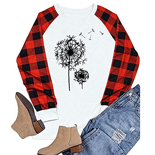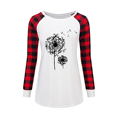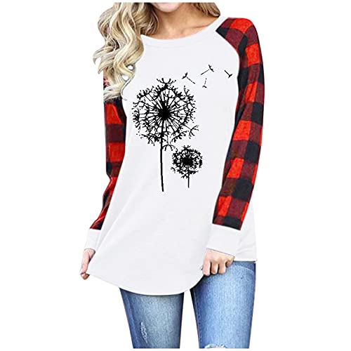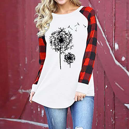Specification: Briskorry Sweatshirt dames paardenbloem print ronde hals lange mouwen geruite splitten pullover bovenstuk tops lente herfst vrije tijd T-shirts blouse jumper shirt