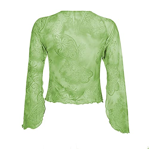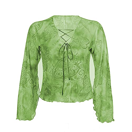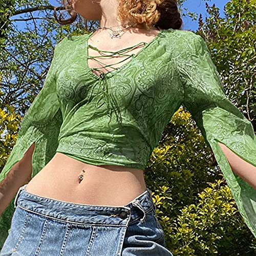 Briskorry Y2K Crop Tops voor dames, met lange mouwen, V-hals, grafische print, slim fit, t-shirt, modieus, voor e-meisjes, streetwear, zeefdruk, persoonlijkheid, crossover gesneden blouse met lange mouwen
