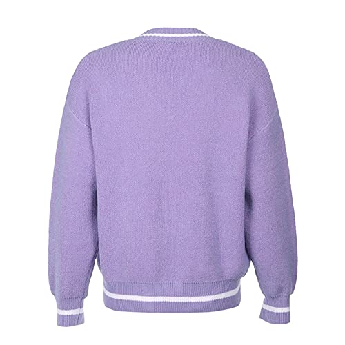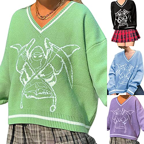 Specification: Briskorry Y2K Harajuku damestops, vintage grafische print, esthetische gebreide trui met V-hals, lange mouwen, casual, schattig, oversized sweatshirt, ovesized pullover