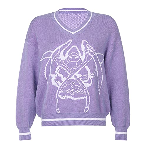 Briskorry Y2K Harajuku damestops, vintage grafische print, esthetische gebreide trui met V-hals, lange mouwen, casual, schattig, oversized sweatshirt, ovesized pullover