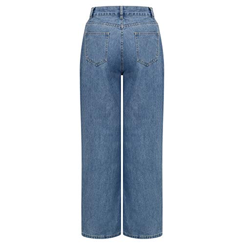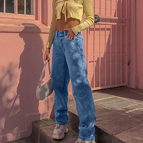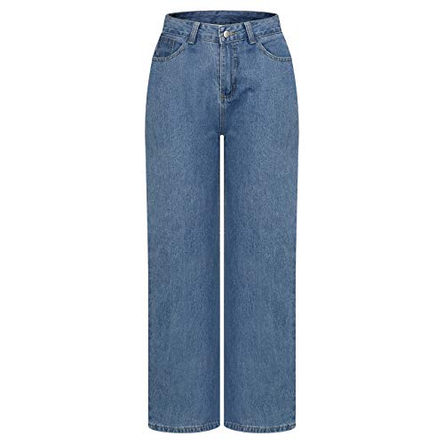 ✿✿ Baggy jeansbroek voor dames, boyfriend Y2K stijl, hoge taille, losse lange denim rechte casual zachte broek, vrijetijdsbroek, modieus, losse jeans met wijde pijpen.