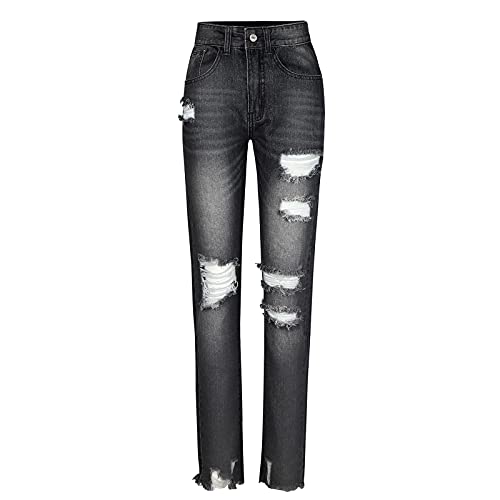 ✿✿✿ Modieuze jeansbroek voor dames, met hoge taille, asymmetrische gaten, casual, baggy, rechte jeansbroek, stretch, denim, bootcut jeans, vrijetijdsbroek, streetwear.