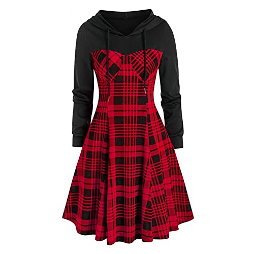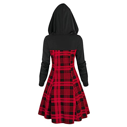 Specification: Gothic jurk dames lange mouwen vrijetijdsjurk: met capuchon geruit patchwork cocktailjurk knielange midi-jurk elegante retro jurk partyjurk punk A-lijn petticoat