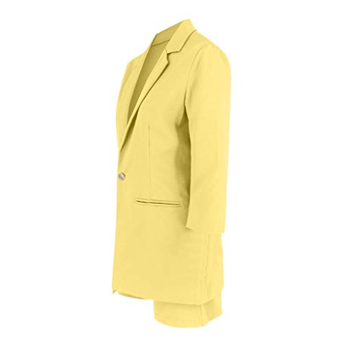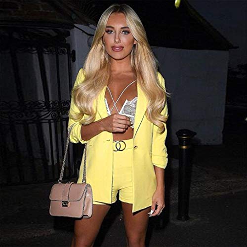 Specification: Zldhxyf Tweedelig pak voor dames, revers, business, kantoor, eenkleurig, blazer, lange mouwen, pak, broekpak, slim fit, shorts, 2 stuks pak sets met riem